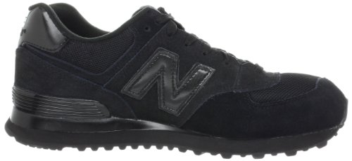 The New Balance 574 is a Classic Retro-Style running shoe featuring an ENCAP® midsole, suede/mesh upper and a solid rubber outsole. Colors: Triple Black + Patent Pop