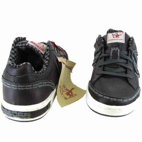 Walk the streets in great style with the Carson Lo Perf casual sneakers from True Religion. Features a leather upper in a casual sneaker style with 5-eyelet lace-up front and perforation detail throughout. Stitching detail and leather horse shoe overlay at sidewalls provides a sporty feel. Leather lining and cushioned insole add comfort. Stitched midsole and rubber traction outsole offer durability and traction.