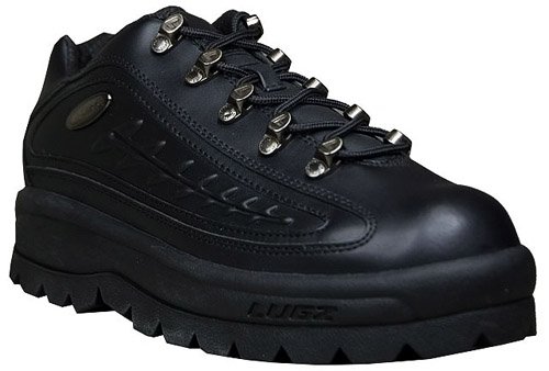 - Dual stitching, metal shoelace hardware, and embossed "L" details for added style