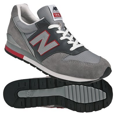 In this Day Tripper rendition of the 996 heritage-style running shoe, New Balance adds a leather panel to the suede upper with some red, white and blue accents for a sharp made-in-usa colorway. The New Balance 996ER features a C-CAP® midsole and ENCAP® wedge. Colors: Grey+ Red + Blue