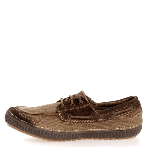 Vintaged style and cool comfort come in the SKECHERS Odesa - Lyoto shoe. Soft suede and distressed twill fabric upper in a three eye lace up casual boat shoe oxford with stitching and overlay accents.