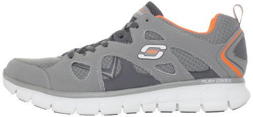 Skechers Synergy Gridiron is a lightweight men's training shoe that works with you to keep you on the move. The mesh uppers have micro perforated synthetic overlays for comfort and durability, with ventilating side panels, a cushioned footbed, and a FlexSole midsole for support that won't weigh you or your action down!